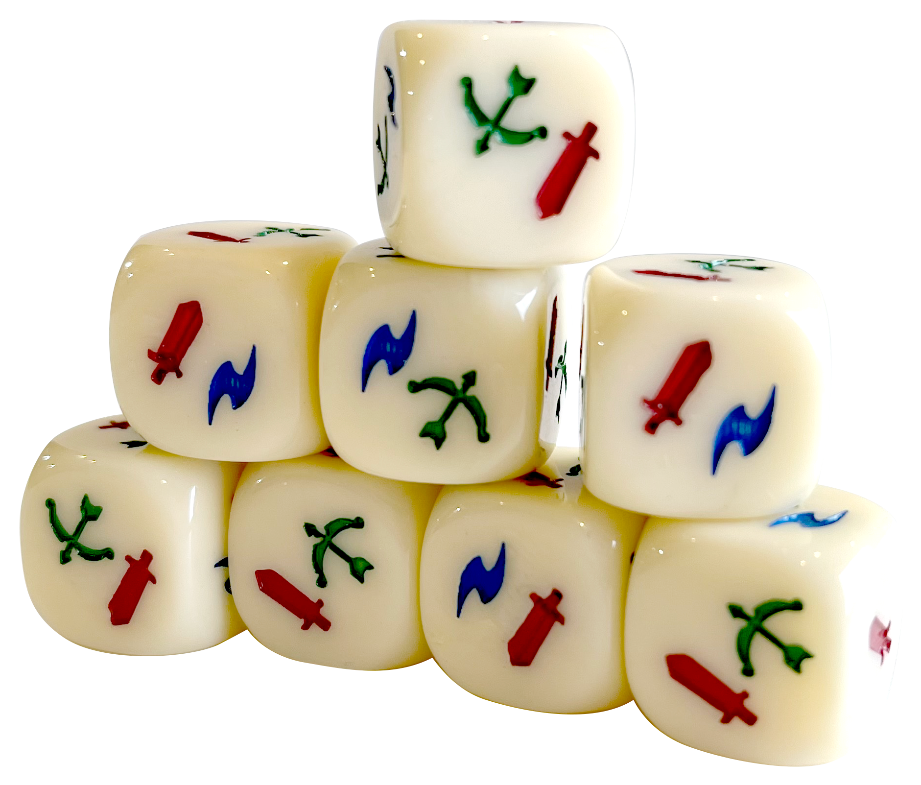 Set of 8 Colorful custom Summoner Wars dice to upgrade your dice and enhance your gaming experience.